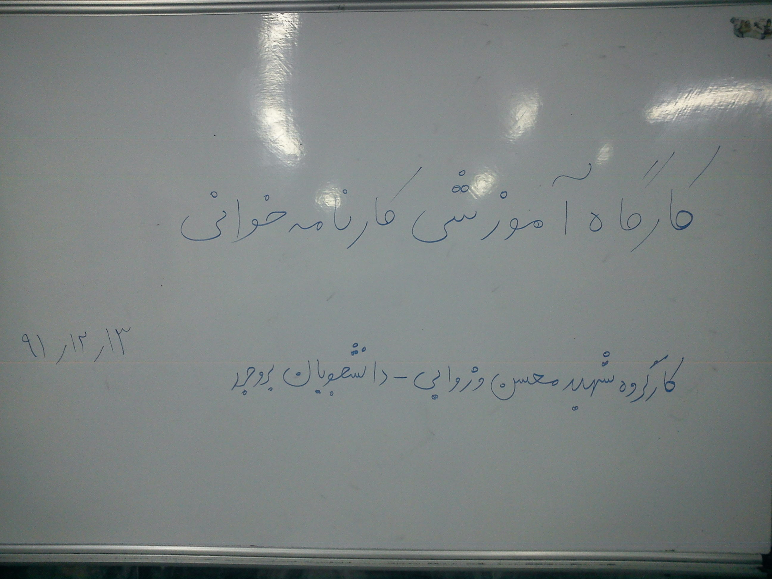 با کمک خداوند متعال کارگاه آموزشی کارنامه خوانی، توسط کارگروه الگوی پیشرفت اسلامی دانشجویان بروجرد(کارگروه شهید محسن وزوایی) در تاریخ 91/12/13 برگزار شد.